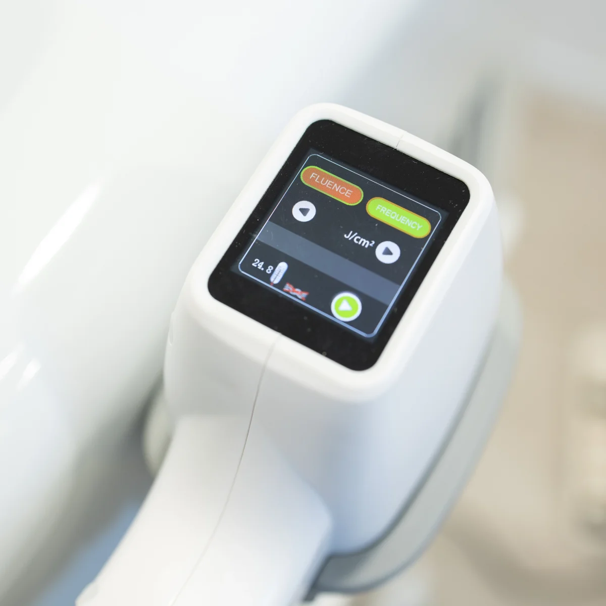 The laser beam is absorbed and converted into heat, disrupting the hair and the cells that drive regrowth. Light pulses are delivered through a dedicated handpiece with adjustable parameters for different body areas. Cooling protects the surface and helps minimise redness.