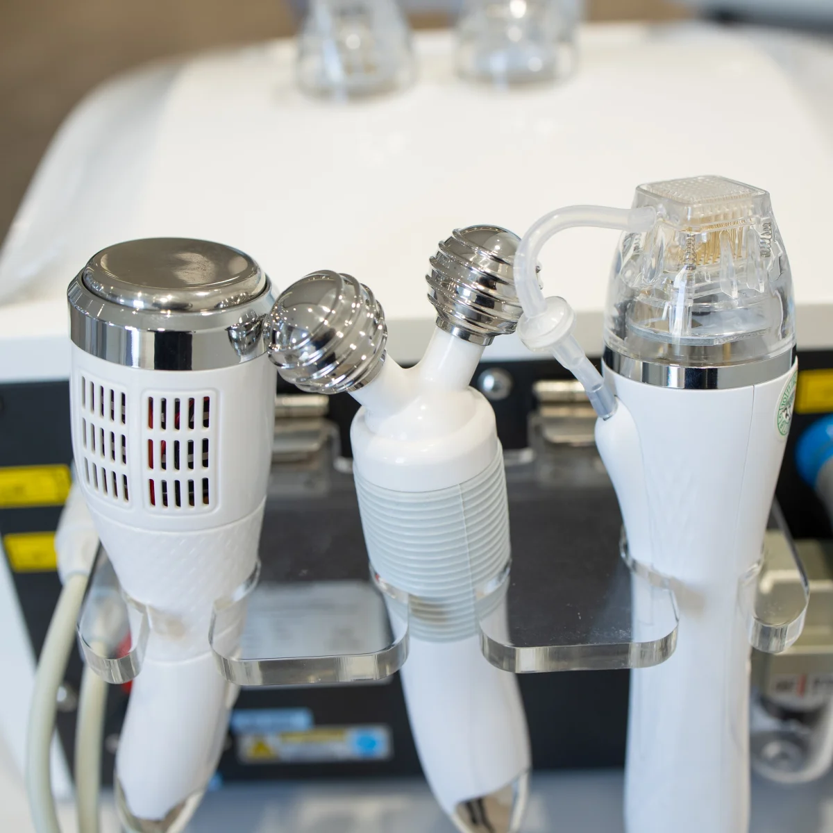 Nakon RF-a: ultrazvuk za preparate, hlađenje 0–5 °C. Ekran 7" — nivo, energija, brzina, dubina, pritisak. Vazdušno hlađenje aparata.