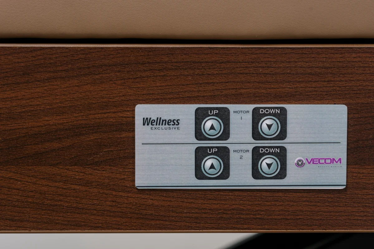 Dvodelni Wellness Exclusive: ista širina i visinski hod kao kod četvorodelnog modela, uz čistiju liniju konstrukcije. Dva motora za visinu i električni oslonac za noge, daljinski upravljač; naslon i ugao sedišta manuelno.